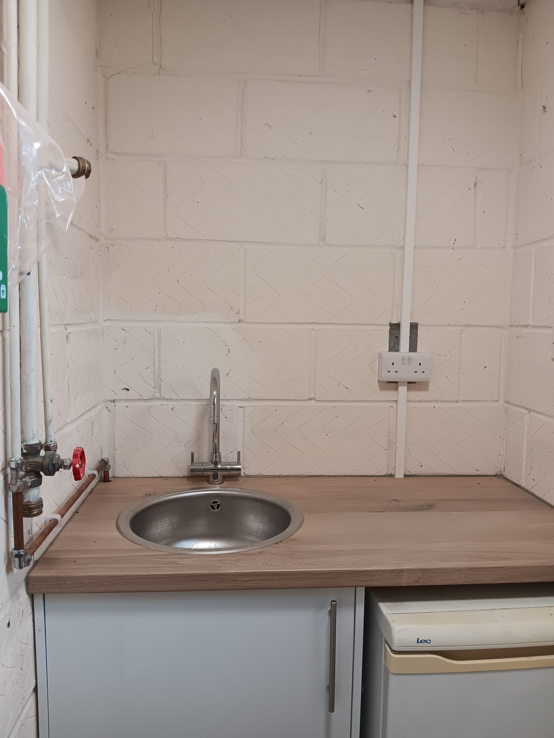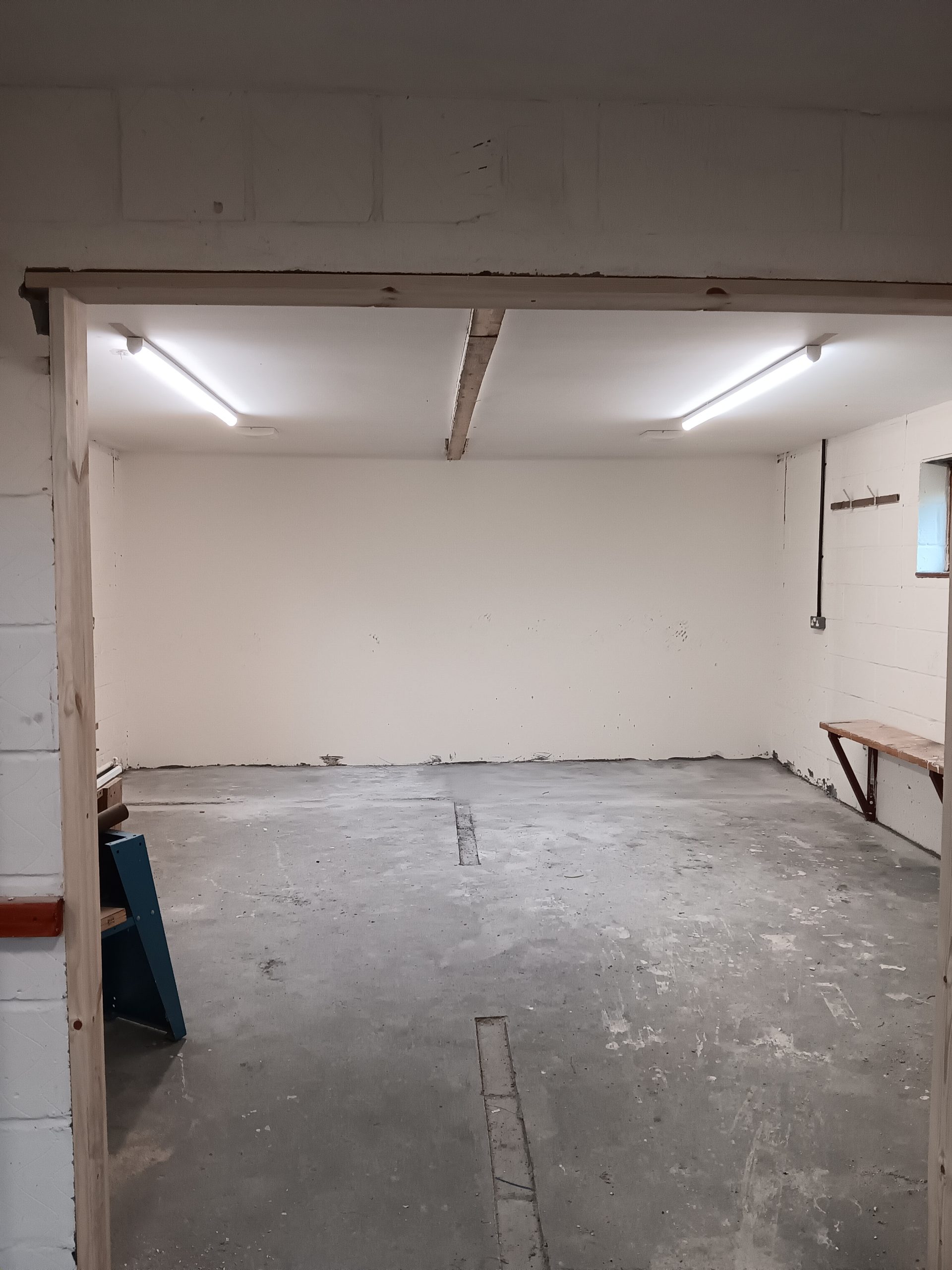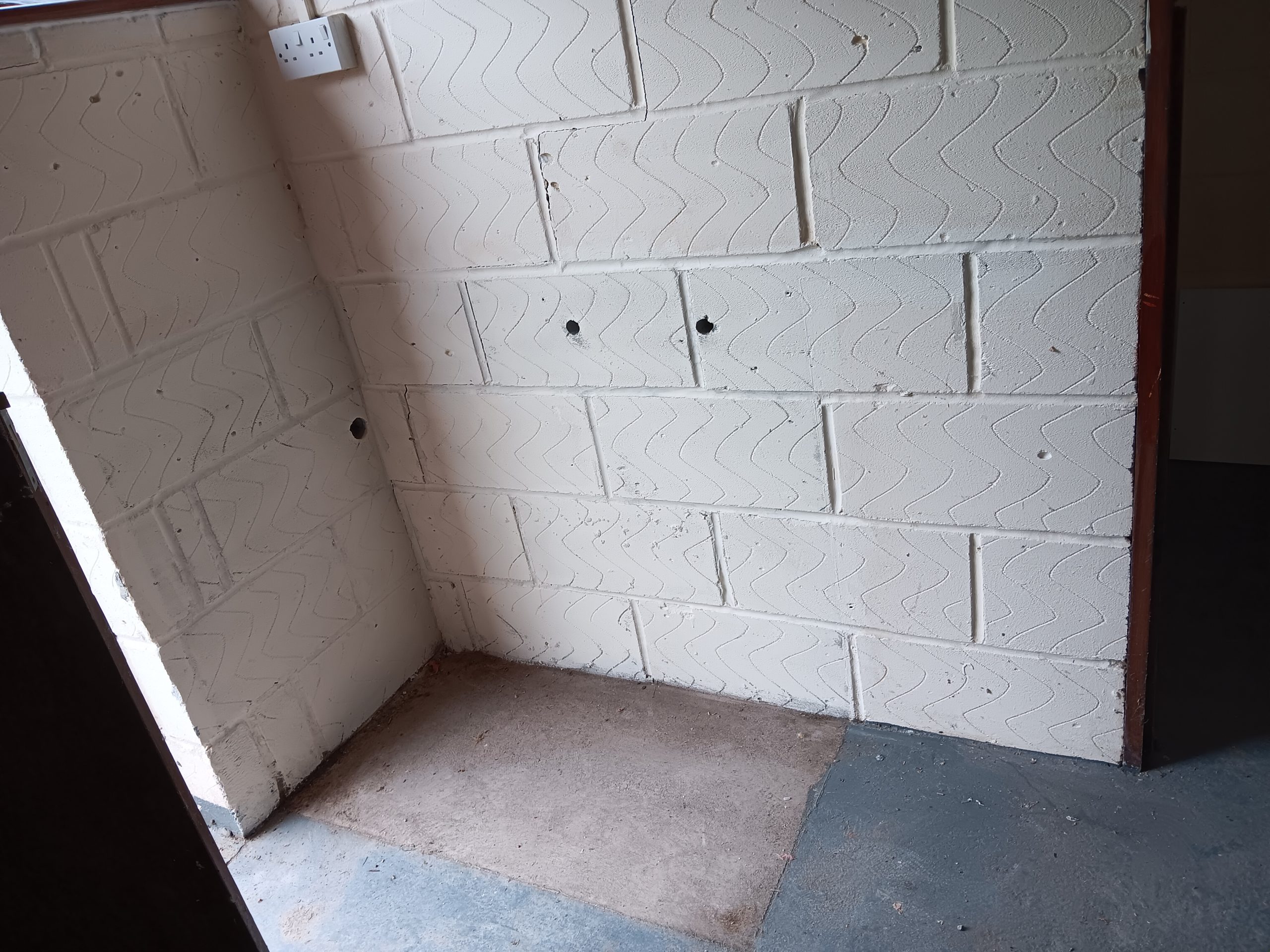 There are signs of what was removed – the sink unit near the door, the central partition wall and doors, the showers – but there is a new sink unit and the interior is clear and could be used for many different purposes.